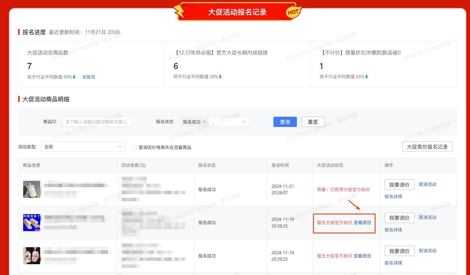 3、其他掉标原因查询,在大促作战室*下方【大促活动报名记录】即可查看: