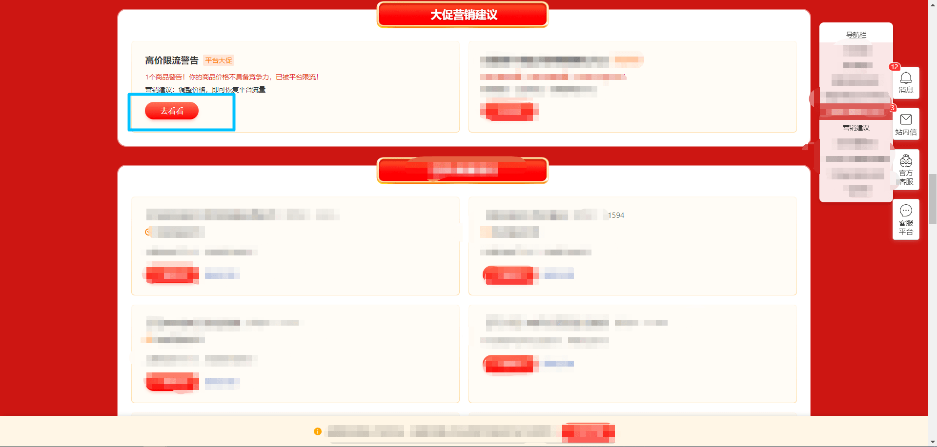 1、点击链接进入大促作战室,会有多个入口提示,引导进入报名记录页面处理高价
