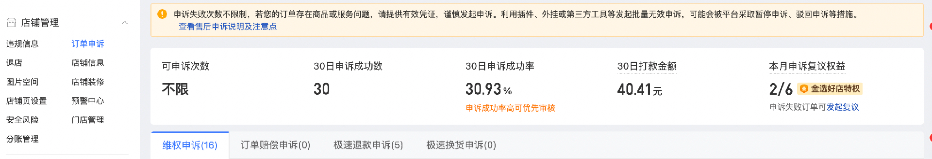 为了提升商家的经营体验,平台为优质商家开放申诉二次审核权益。若商家对首次申诉结果存在异议(例如证据未被充分采纳,订单情况发生变化等),可以通过复议补充材料或说明,争取更公正的结果。