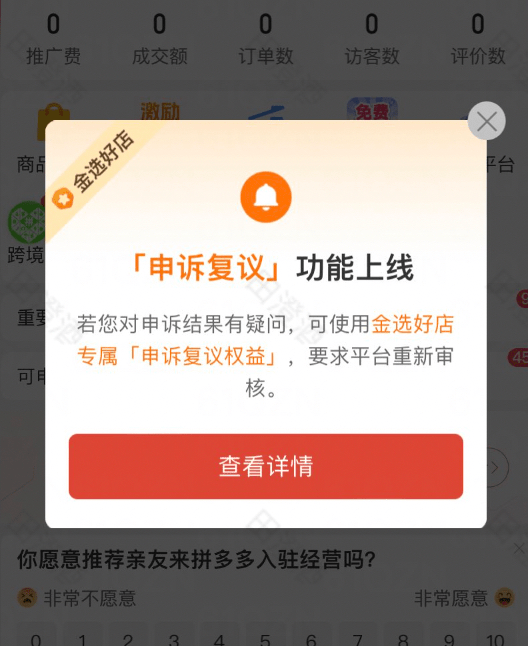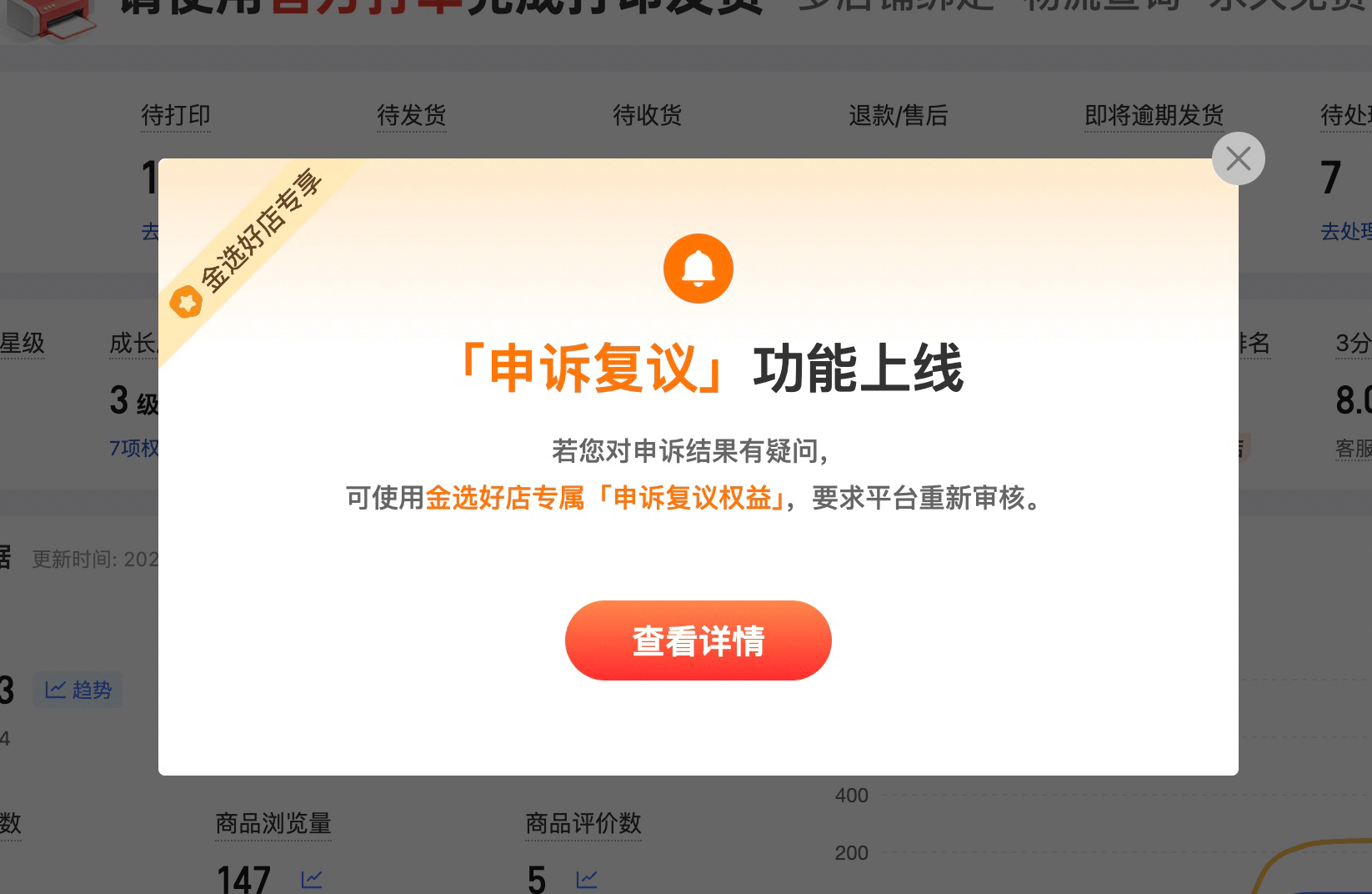 七、已经是金选好店、优选好店,但无法使用复议功能?