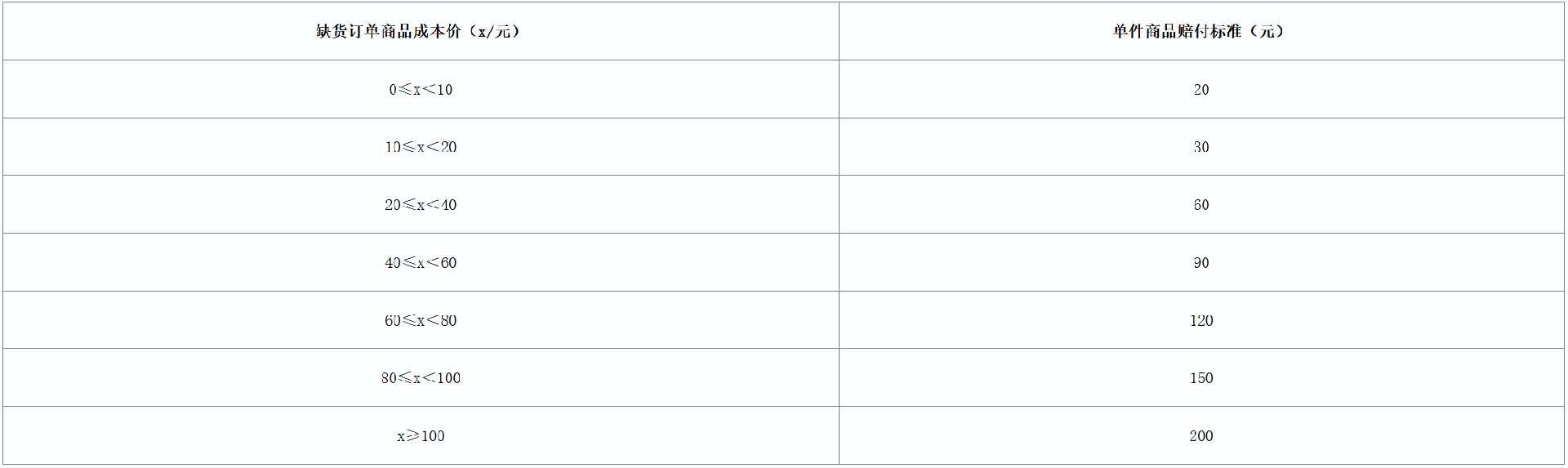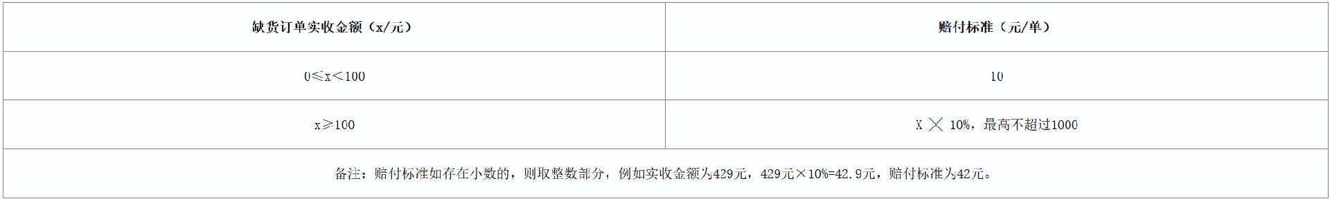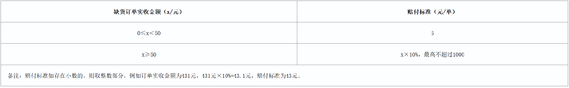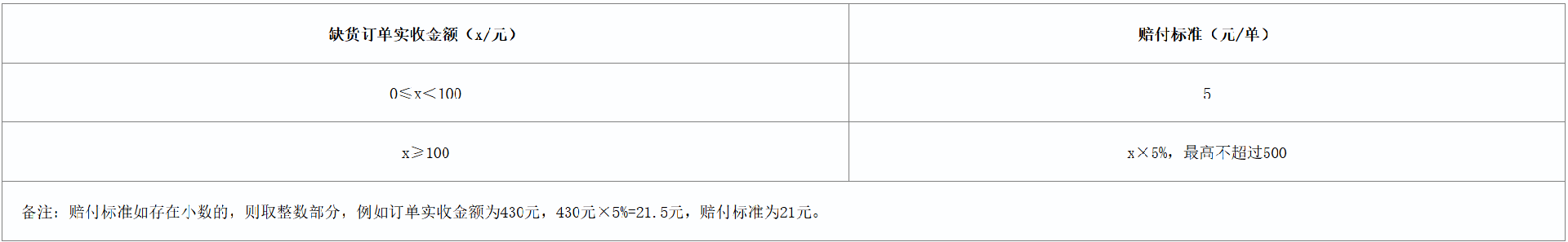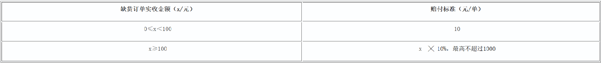 订单缺货赔付标准