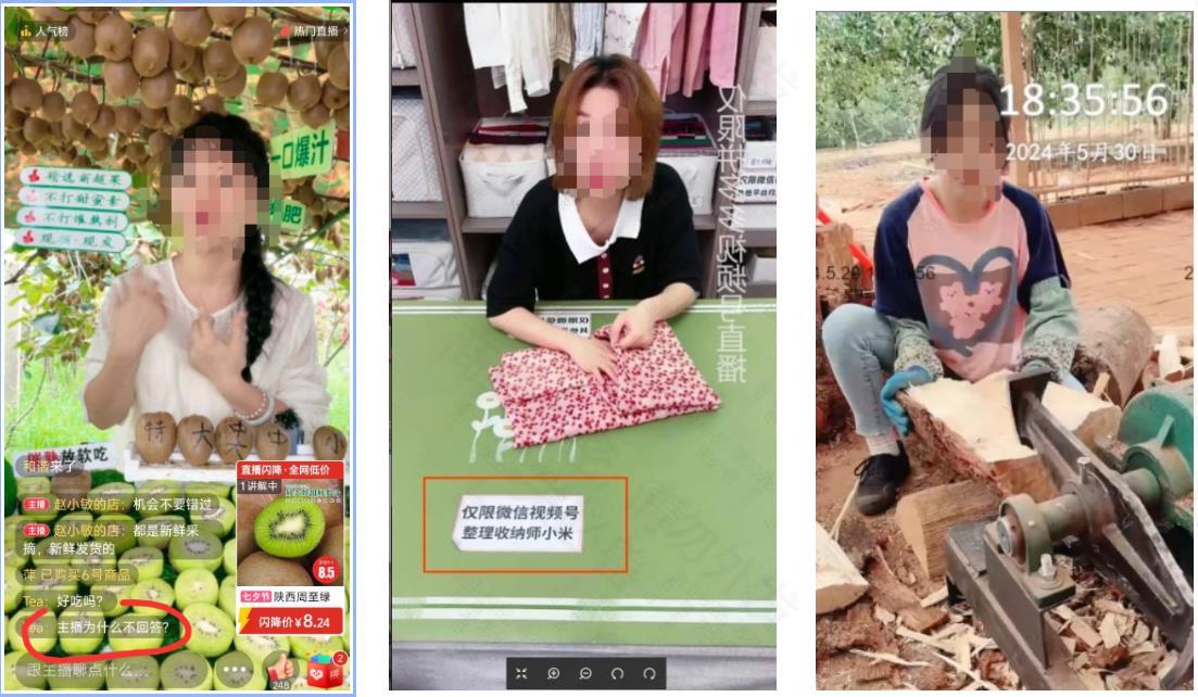 违规示例:女性轻微露沟(图1);疆藏地区主播方言直播(图2);画面侧放(图3)
