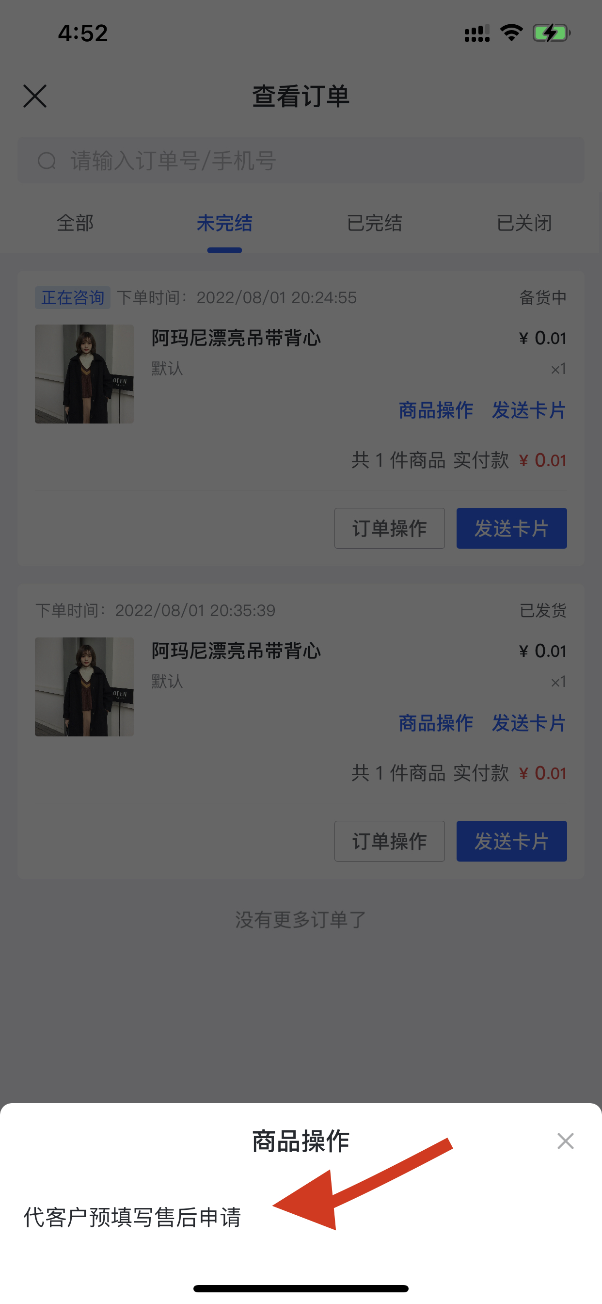 代客申请售后功能,可以支持商家客服在飞鸽工作台以及抖店App内,帮助消费者预提交某笔订单的售后申请单,客服可提前填写好售后单内容发给消费者,消费者可直接提交售后申请(也可修改后提交),让消费者提交售后申请更加方便。